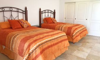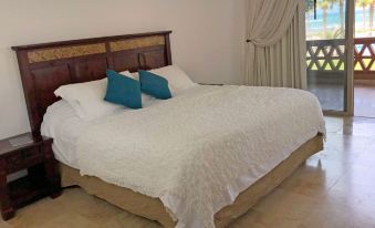 Situated right in front of the beach, this beautiful condo has great views. It has a full well equipped kitchen, the master bedroom has a king sized bed, second bedroom with two full beds, both with their private bathroom and 55” Tv’s, and the Living room has a big screen tv (75inch), Apple Tv, cable tv, Full Bathroom, pull out couch with memory foam mattress and large balconies in every room with pool and sea views. There's a gas barbecue grill on the balcony to cook some steaks or your catch of the day!