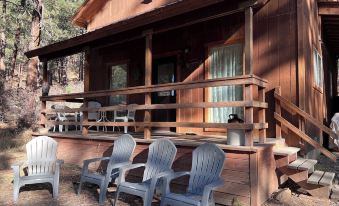 Located approximately 8,000 feet in elevation, the summers tend to be dry and mild with temperatures ranging in the 60’s to the 80’s and the winters are cold and snowy. Please be advised that 4WD is a necessity in the winter months. The community roads are dirt and the cabin is located 2 miles up within the community of Forest Lakes.