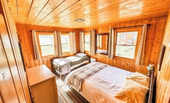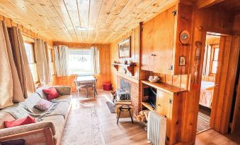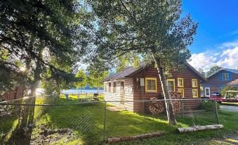 Price Bunkhouse (528 sq ft) is an intimate lakeside cabin with splendid lake and mountain views. The wood paneling and fireplace help to create a cozy atmosphere. This cabin is excellent for small families, and the fenced yard is perfect for pets. The cabin’s yard is lakefront/riverfront, with excellent fishing directly fronting the cabin.
