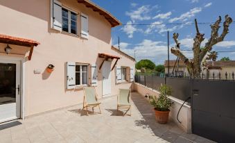 2-family house "La Bastide de Claude", renovated in 2022. In the centre of La Roquette-sur-Siagne, 6 km from the sea, south facing position. For shared use: well-kept garden 400 m2 (fenced), parking (for 2 cars) on the premises. Shopping centre 1 km, restaurant 300 m, bakery 400 m, bus stop 200 m, sandy beach "Plage de la Bocca" 6 km. Golf course (18 hole) 8 km. Nearby attractions: Cannes 9 km, Nice 35 km, Monaco 60 km, St.Tropez 70 km. Hiking paths: Tanneron 5 km. "Elena", 2-room apartment 55 m2 on 1st floor. Object suitable for 2 adults + 2 children. Bright, very beautiful and stylish furnishings: living/dining room with 1 double sofabed (140 cm, length 190 cm), satellite TV and air conditioning. 1 double bedroom with 1 french bed (180 cm, length 200 cm), air conditioning. Kitchenette (4 ceramic glass hob hotplates, toaster, kettle, microwave, freezer, electric coffee machine). Shower/WC. Electric heating. Terrace, south facing position. Terrace furniture. Facilities: washing machine. Internet (WiFi, free). Please note: non-smokers only. Offer by a private individual according to Art. 155, IV of CGI.