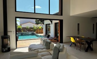 We welcome you to our brand new family home. Located 2.7 km from the beach and a 9-minute bike ride from the fabulous La Teste market, it's perfect for relaxing or enjoying activities like cycling, water sports, or even strolling along the coastal paths. Close to the Dune du Pyla, our villa offers four bedrooms, including a master suite with a dressing room, toilet, shower, bathtub, and bathroom, and a heated swimming pool from June to September. Ideal for families and friends! The Accommodation