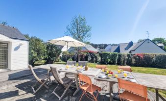 Large single-family house "Les Guérins". Property composed of main house and outbuilding, on the outskirts, 1 km from the centre of La Trinité sur mer, 800 m from the sea, 3 km from the beach, in a cul-de-sac. Private: garden 300 m2 (fenced), parking (for 2 cars) at the house. Shop 1.2 km, grocery 1.2 km, supermarket 1.2 km, restaurant 800 m, bicycle rental 850 m, bus stop 1 km, sandy beach "Kerbihan" 2.5 km, thermal baths "Thalazur Carnac" 7 km. Sports harbour 850 m, golf course (18 hole) 15 km, surf school 10 km, sailing school 1.5 km. Nearby attractions: Les Quais de la trinité-sur-mer 1.5 km, Les Alignements de Carnac 3.7 km, Port de saint-goustan & Auray 17 km, Presqu'île de Quiberon 18 km, Vannes et son centre historique 31 km. Hiking paths: Golfe du Morbihan 20 km. "Les Guérins", 6-room house 170 m2. Comfortable furnishings: living/dining room with TV (flat screen). Exit to the terrace. 1 room with 1 french bed (1 x 160 cm, length 200 cm), bathroom. 1 room with 2 beds (90 cm, length 190 cm). 1 room with 1 x 2 bunk beds (90 cm, length 190 cm). Open kitchen (4 hot plates, oven, dishwasher, toaster, kettle, microwave, electric coffee machine). Shower/WC, sep. WC. Upper floor: 1 room with 1 french bed (1 x 140 cm, length 190 cm). 1 room with 2 beds (90 cm, length 190 cm). Shower. Large terrace, south facing position. Terrace furniture, barbecue. Facilities: washing machine, iron, hair dryer. Internet (WiFi, free). Please note: smoke alarm. No internal connecting door between the separated properties. Bed layout is flexible. There are more sleeping options available than the maximum number of people allowed which may, however, not be exceeded. Offer by a private individual according to Art. 155, IV of CGI. 56258000093Z7