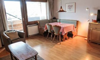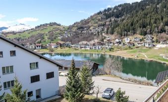Cosy apartment house "La Prada", 1'020 m a.s.l., 6 storeys. In the resort, 300 m from the centre, in a central, quiet, sunny position, 300 m from the lake, 2 km from the skiing area. For shared use: property, indoor pool heated (seasonal availability: 01.Jul. - 20.Oct. and 01.Dec. - 30.Apr.). Children's playground. In the house: sauna (extra). Playroom, lift, central heating system. Motor access to the house. Communal covered parking at the house. Grocery, supermarket, bakery 400 m, bus stop "Laax GR, posta" 300 m, lake Laxersee 300 m. Cable car 2 km, ski lift 2 km, skisport facilities 2 km, slopes 2 km, ski rental 2 km, ski bus stop 300 m, ski school, children's ski school 400 m, ice rink, children's playground 300 m. Nearby attractions: Ruinalta/Rheinschlucht 2 km. Well-known ski regions can easily be reached: Weisse Arena Flims/Laax 2 km. Well-known lakes can easily be reached: Laaxersee 300 m, Caumasee 4 km. "La Prada Wohnung 119", 2-room apartment 45 m2 on 2nd floor. Cosy furnishings: living/dining room with 1 sofabed and cable TV (flat screen). Exit to the balcony. 1 small room with 2 beds (90 cm, length 200 cm). Alcove with curtain with 1 fold-away bed (90 cm, length 200 cm). Open kitchen (3 hot plates, oven, toaster, kettle). Shower/WC. Large balcony, south facing position. Balcony furniture, box-room. Beautiful view of the lake, the mountains, the countryside and the resort. Facilities: Internet (WiFi, free). Garage space n 119 at the house. E-charging station. Please note: non-smokers only. Maximum 1 pet/ dog allowed.