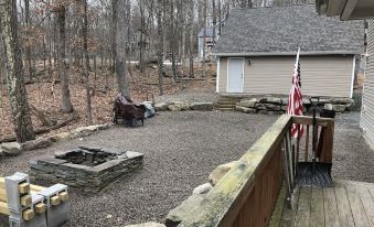 Enjoy all this Northern Pocono community has to offer while staying at this luxury Masthope Mountain 4BR Chalet. You are guaranteed to see a deer in your own backyard. Masthope Community is an all-year round community with a 250 acre spring fed lake for swimming, boating, water-skiing, and fishing. The community boasts an olympic size swimming pool with water slides and a kiddie pool area. You can also enjoy tennis, basketball, handball, bocce ball, horseshoes, shuffleboard and more. Masthope has hiking trails and horseback riding. In the winter, you can ski at Masthope's own Ski Big Bear area with 18 trails, five lifts, with skiing, snow boarding and tubing. Home is less than 5 minutes from ski mountain. Main living room features cathedral ceilings with floor to ceiling windows that lead out onto a wrap-around deck with patio seating. House features central A/C, ceiling fans, WiFi and internet service. Main living room features a 55 in. LCD tv with blue ray disc player. All 4 bedrooms have LCD tv's on wall, cable and dvd players. Bedroom 1 features Queen size bed and a full size dresser and closet. Bedroom 2 features a Queen size bed and a twin size bed and small dresser and closet. Bedroom 3 features a Queens size bed and a twin size bed and full size dresser and closet. Bedroom 4 features a King size bed and a full dresser and closet. Loft features a daybed with 2 twin beds. Basement has a Queen size Futon.