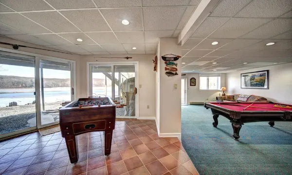Situated in the beautiful Upper Pocono Region, this spacious 4,000 sq ft lakefront home offers boating, fishing, swimming, horseback riding, mini-golf, gym, arcade, biking, hiking, leaf peeping, skiing, snow tubing, and more!
