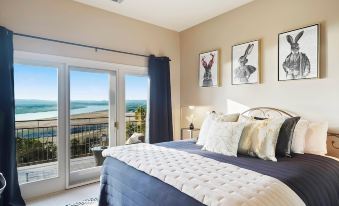 Upon entering, guests are welcomed by a chic and comfortable living area complete with a large smart TV and abundant seating for all.Fully stocked island kitchen with double ovens, keurig coffee maker with pods included, dining room that easily seats 8 plus. Two bedrooms with 2 full bathrooms on main floor - Bedroom #1 - King bed, seating area, large walk-in closet, walk in shower, double sinks w/smart tv in the middle, soak tub and private doors leading to outdoor living area. Bedroom #2 - Queen bed, work desk, ADA compliant walk-in shower and a private door leading to a private outdoor seating space. in addition the Main floor includes a office/work area plus full size washer and dryer.