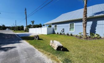Beautiful fenced in private pool awaits you after a sandy day at the beach. Night time swims are even better with accent lighting making the backyard Palms glow as well as Porch String Lights and Pool multi color LED lights dancing in the water while you swim. (The pool does not have a heater)