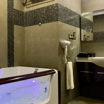 However, there are a few areas that could be improved. First, the prayer hall is located in an awkward and unclean area. I noticed a family struggling to find a suitable place to pray, and the staff was not even aware of the Qibla direction. They ended up praying in the executive room, which was not ideal. Secondly, the café and restaurant lacked alternatives like almond or soy milk, which is important for guests with allergies. Some in-room amenities, like the dental kit, were missing at check-in and appears the second day after the room makeup. The swimming pool ladder felt weak and was not deep enough, which could be a safety concern. Additionally, the iron in the room was dirty, broken, and leaking water, which made it difficult to use.