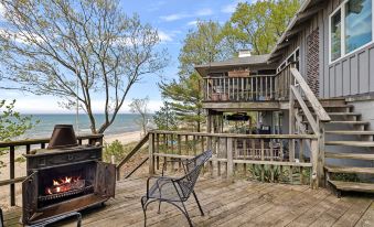 This newly renovated vacation home sits on 1.3 acres with a stunning Lake Michigan beach. The beautifully designed interior, amazing lake views, and superb detailing will make you feel like you're in Heaven on Earth! It features a spacious Great Room, fireplace, flat-screen TV, Chef's Kitchen, and a fabulous 3-season dining room. The top-quality bedrooms and deluxe-appointed bathrooms ensure comfort. Relax downstairs in the family room or on the huge deck. Near a cultural town, parks, and more!