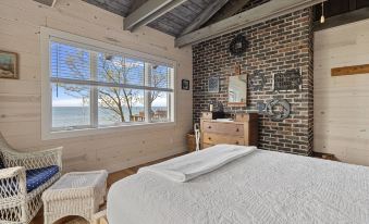 The outdoor deck has two levels, with tremendous, sweeping views of Lake Michigan and plenty of room to relax, have a drink, or just take in the grandeur of Mother Nature. There’s also lower-level outdoor seating beneath the main deck, with easy access from the downstairs family room. And anytime you want, you and your guests have just a short walk down to the beach to enjoy its crystalline sand, clear waters, and storied shoreline! Plus, you’ll have a stand-up paddleboard available to you. By the way, the Gasthaus Fox property is pet-friendly!