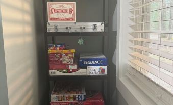 To ensure your time is spent relaxing, and having fun, you will enter a fully stocked cabin. The living room has a sectional along with a couch table and oversize bean bag chair for plenty of seating, and a 55 inch flat screen for all your streaming needs. The fully stocked kitchen has everything you will need for cooking. The dining room table has seating for 8, along with 3 seats at the island. There is a washer and dryer for your convenience. There is a spacious full bathroom with a shower and tub. Along with a half bath to help with larger groups. The first bedroom has 4 XL twin bunk bed. a 35 inch flat screen, and all the games on the corner shelving system, whether its a fun poker night, game night or rainy day fun. Bedroom 2 has a Queen bed along with a 35 inch Flat screen. Bedroom 3 has a queen bed along with a 35 inch flat screen.