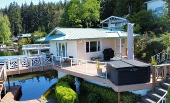 Unique Lake Goodwin Waterfront Cabin with Private Hot Tub and Boat Moorage