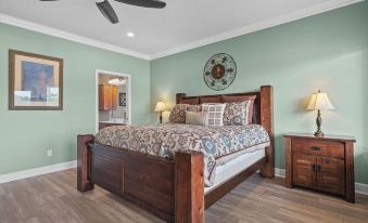 Retreat to the opulent master suite featuring a king-size bed and a 32' plasma TV, ideal for unwinding after a day of adventure. Indulge in relaxation in the lavish master bath, boasting a spacious jacuzzi tub. The second bedroom, adorned with a cozy queen bed and bunk beds, ensures ample space for the whole family to recharge.