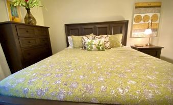 The two bedrooms both feature super comfy king-size beds and smart TV in master bedroom only(when you want to have a little time to yourself). The master bedroom has an en-suite bathroom with a changing area and vanity with seating to help with getting ready for a day at the races, an evening dinner, or a night out on the town! You'll appreciate the large walk-in tiled shower and extra space we have for getting ready for a fun day or night. Staying in? Step out onto the balcony and take in the fresh air and gorgeous views of Lake Hamilton. Our guest bedroom also has a king-size bed with a hall bath just outside your door that features a tiled shower and bathtub combo. Want to bring along a couple more people? We offer a queen-sized air mattress for the living room for them!