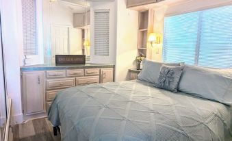 This one-bedroom home offers cozy accommodations throughout. Enjoy lake views from the living room and a 40" smart TV. The dining space comfortably seats four and the kitchen is fully stocked with all your cooking, baking, and entertaining essentials. The bedroom host a queen size bed, smart TV and direct access to the common bathroom. The living room offers a short-queen sofa sleeper with an added plush 3" mattress topper for extra comfort. The spacious bathroom offers a tub-shower combo with complimentary bath toiletries. Other convenient amenities include covered parking for two vehicles, bicycles, and beach gear for your enjoyment. For our guests staying five nights or longer, we offer in-home laundry access.