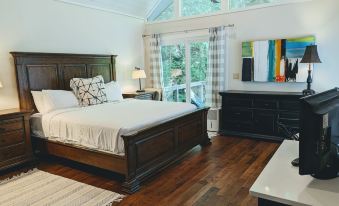 Lure Me was recently updated, boasting an array of new enhancements introduced in 2023. Enjoy a waterfront experience and serene lake views with our improved dock, surrounded by beautifully landscaped grounds. New lake accessory storage with 2 complementary canoes and a paddleboard allows you to explore the waters with ease. Upgraded décor and a brand-new plush king mattress ensure that you are relaxing in comfort.