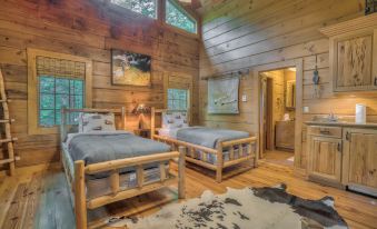 This home places a premium on privacy with two separate living spaces, making it perfect for a romantic getaway or a peaceful escape with family and friends. This getaway offers open-concept spaces with two bedrooms and two baths in the main home and two bedrooms and 1.5 baths in the log cottage. This property comfortably sleeps 8, but up to 10 guests are welcome.