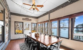 Your toughest decision will be where to enjoy your morning coffee - from the rocking chairs on the huge dock, from the swinging daybed in the four season room, or from the deep seating chat set on the patio? In the evening, your group will enjoy the fantastic views of the lake while making s’mores at the built-in fire pit, or take your bottle of wine down to the dock to listen to the waves lapping on the shore.
