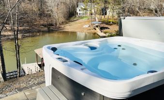 Full outdoor kitchen with Hot Tub, Bull gas grill, Kegerator, fridge, fire pit, green space, cornhole and of course….the private dock that has space for you to bring or rent your own boat. Two waverunners (Contact the owners for availability and details). Blissful Lake Retreat also provides you with two kayaks, paddle board, watermat, pedal boat and life jackets.
