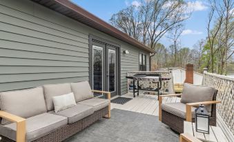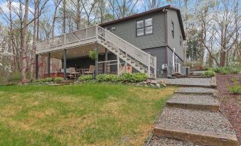 This recently renovated waterfront home nestled in the woods features a hot tub, fire pit, dock and massive TV room. You'll also find kayaks, paddle boards, corn hole boards and more. Styled bedrooms, walk in shower, and inviting outdoor spaces make this the vacation spot you need. We have the little things too - stocked kitchen, books, games, fast internet and more. We’ve thought of everything to provide you with the best experience. Pets allowed!