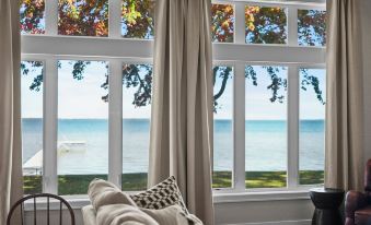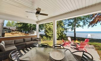 As evening falls, enjoy our smokeless fire pit or fire up the grill and enjoy a delicious BBQ while taking in the stunning sunset views over the lake. Inside, our home is designed for both relaxation and entertainment, featuring a cozy living area with a fireplace and indoor games that will keep everyone entertained during those cooler Michigan evenings.