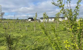 Drovers Lodge sits in the heart of the farm overlooking the fields of sheep with tinto hill in the background. Guests are welcome to enjoy the orchard and children's play area out the back door. There's a decked area with seating and a firepit in the garden. There's enough parking for 4 cars right outside the front door to the lodge too.