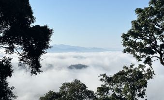 房間帶個陽台,可以看到一點點雲霧,圖片是早上在房間的陽台拍的。但是設施還是不太好,比不上正規酒店,不知道翁基其他家的是不是這樣,整晚能聽到老鼠在床頭後面跑來跑去,原生態吧