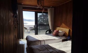 因為帶了行李箱,我們到路口之後打電話給店家,老闆和老闆娘一起來接的。看我們住兩晚還免費升級了房間,房間整潔寬敞明亮,陽台很寬視野很好,天氣好可以看日出,我們剛好碰到陰天衹看到雲海。老闆娘很淳樸熱情,晚上回來的時候還邀請我們喝茶。老闆娘家的小貓很可愛很親人,