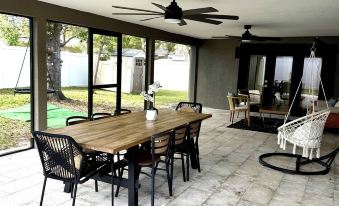 The house, with 4 br/ 2 ba, is very well appointed and comfortable. The location is only a 25 minute drive to Tampa International Airport and 15 minutes to our celebration in Wesley Chapel. Some things needed would be an explanation of how to navigate the tv and its' multitude of streaming providers. Also, a 4-slice toaster, cookie sheet, pot holders, and laundry detergent for washing towels mid-week. The transition between the back room and bedroom needs to be removed and the difference in floors transitioned with a taper as one of our party tripped and fell to the floor. Overall, a very affordable and comfortable house to stay in.