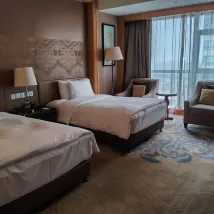 Обслуживание превосходное! Персонал очень внимательный, но при этом ненавязчивый. Отель предлагает отличное соотношение цены и качества. Есть тренажерный зал и бассейн. Тренажёров много, все они довольно новые, а вода в бассейне очень чистая. В непиковые часы людей совсем немного. Мы жили в представительском номере на 20-м этаже: оттуда открывался потрясающий вид, и было очень тихо. Завтраки в отеле очень разнообразны: на выбор представлены как китайские, так и западные блюда, которые точно придутся по вкусу каждому. Отель расположен прямо рядом с торговым центром Wanda, что очень удобно для шопинга, еды и развлечений. Поблизости также есть магазины 7-Eleven и Meijiayou. В лобби отеля продаются сувениры и дизайнерское мороженое. Если что-то забыли купить, можно докупить здесь.
