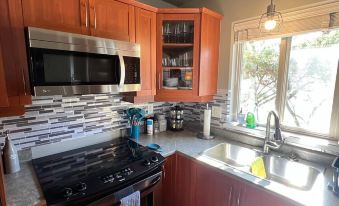 Whip up culinary delights in our fully equipped kitchen, complete with pots, pans, dishes, and silverware. Enjoy appliances like a dishwasher, microwave, stove, oven, toaster, air fryer, blender, and coffee machine. We even provide a variety of spices to enhance your meals!