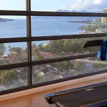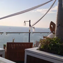 На балконе очень сильный ветер, хотя небольшая надстройка балконной стены вполне сделала бы более приятными встречи закатов с видом на великолепный залив. Соответственно, высушить купальник и полотенце достаточно сложно. Я не сторонник сдавать пляжное полотенце каждый день, ведь вся мировая туриндустрия ратует за сохранение природы, минимизируя использование стирального порошка, мы бы сушили полотенца, использовали несколько раз, но сушилки просто нет.