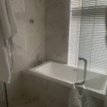 Швы в душе жёлтые в плесени, душ сзади протекает. Как же убираются в номере, если уборщик этого не видит, и не может сообщить о поломке руководству? Дел на 3 минуты по цене копеечной прокладки. Полы не моют (в туалете лежал женский тёмный волос ещё при заезде. Наблюдали за ним, не исчез).