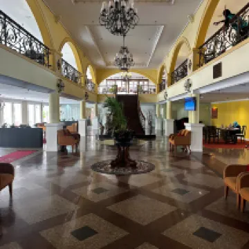 Очень хороший отель для своей цены. Большой, красивый, классический, хорошо расположенный. Рядом и ночной рынок и кафешки и магазины. Но он такой старенький и пошарпанный, затертый до дыр, я бы сказала. Ресторан и завтраки прекрасны. Неприятно было, когда нам или забыли или осознанно перестали класть туалетную бумагу, но это мелочь. А вот серьезный минус всех недорогих отелей на острове это непонятное, нелогичное, абсурдное отсутствие пляжа для купания в море. Кругом море, солнце, пальмы, птички поют, даже первая береговая линия, а плавать можно только в детском бассейне, это так странно для острова, окруженого чистым теплым морем, без медуз, ежей и акул. Плюс отелю за флаер на бесплатное однократное посещение аквапарка.