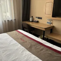 Я приехал в Ланьчжоу в командировку, случайно нашел онлайн отель рядом со станцией высокоскоростной железной дороги, сделал заказ и приехал сюда. Отель находится очень близко к станции скоростной железной дороги. Поездка на такси займет всего пять или шесть минут. Персонал на стойке регистрации с большим энтузиазмом и хорошим отношением. Дама на стойке регистрации, которая забронировала специальный номер, помогла обновить номер до большой кровати с окном на улицу, что было очень приятно. Комната очень хорошая, сестра для гостей убирает ее очень чисто, и соотношение цена/качество действительно высокое. Я остановлюсь здесь в следующий раз.