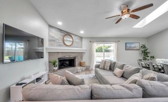 The house is located on a large corner for perfect serenity. It boasts 3 large bedrooms with nice sized closets for all your belongings. There is also an office/media room off of the garage that has a desk and Queen sofa bed. The heater & chiller pool is perfect for enjoyment summer and winter months. There is a covered patio perfect for escaping the sun and socializing next to the pool. Guests will enjoy the large yard and parking area in the front (next to the driveway), which is perfect for an RV or boat. There is a dedicated 30 amp circuit for all your charging needs.