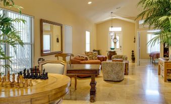 Open floor plan with stone flooring - Game table - Library - Large circular sofa seats 1-dozen - Wood burning Cowboy Cauldron (great for making S'mores Yummy), Spa, Grass for croquet in rear yard - Covered Patios - Built-in patio misting system (seasonal) - nearby park and walking trails - Sunset Station Casino 1.4 miles away with bowling, movie theater, arcade and restaurants (Recommend the Oyster Bar - Cajun Cuisine).