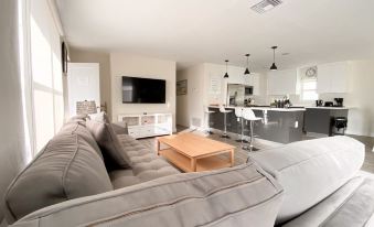 Let me start by saying this is a very comfortable, spacious property. Plenty of bathrooms 2 kitchens close to everything yet still quiet and very very safe. I just wish they would make more of the spacious patio area. Some seating and umbrella would be perfect. I wouldn’t hesitate to book again!