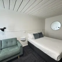 空間比較大,住的是三人間,有一個小卧室放着單人床,但沒有門和大房間隔開,如果有門就更好了,不會互相影響休息