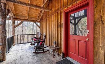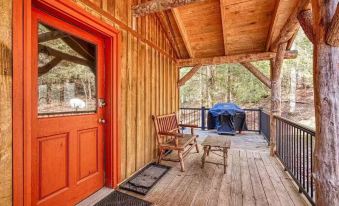 Enjoy rocking your worries away us under the front covered porch with a coffee on us even on those rainy days! The deck wraps around to the side of the cabin and offers a Weber gas grill, a log picnic table for outdoor dining, and four additional high end folding chairs.