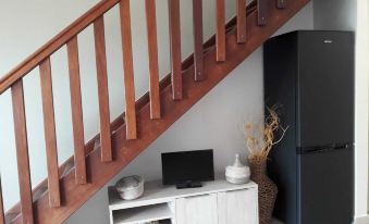 For your comfort: 2 bathrooms (one downstairs and the other upstairs), kitchen, air conditioning of the 2 rooms, TV,