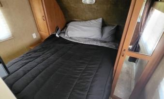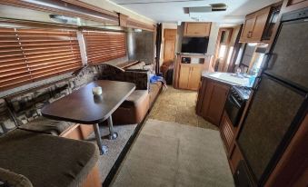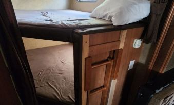 Super budget friendly. This is an older camper with minimal amenities. Has all your basics stove, shower, microwave, fire-pit, bbq pit and picnic table. Located on a 35 acre property with additional cabins. Semi private. Does include bedding and towelsAbout pets:Pets allowed: dogs less than 50 lbs per pet (limit one pet total).About checkOut:Check out before 10:00 AM.About children:Children allowed: ages 0-17.About checkIn:Check in after 3:00 PM.About smoking:Smoking is not permitted.About minBookingAge:Minimum age to rent: 18.About events:No events allowed.