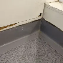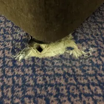 Sharp things under carpet when walking barefoot. Bathroom in a state of poor repair.