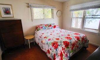 This three-bedroom, one-bathroom ranch home welcomes six guests with one queen, one full, and two twin beds. There is a queen sofa bed in the living room. The house has an enclosed porch that overlooks the lake. There is great cell service in this area.