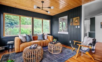 Stillwater is conveniently broken into two wings. In the first, you will find an open floor plan kitchen, dining, and living area to gather your group. The kitchen was professionally designed and stocked to cook and serve beautiful meals while you travel. There is a gas fireplace to enjoy while you play games or eat on the dining table that seats 6. There are also 2 bedrooms and 2 bathrooms located in this wing. Each bed is queen-sized fitted with quality linens on a comfortable new mattress. The back bedroom is outfitted with a desk for working on the go and the bathroom is ensuite.