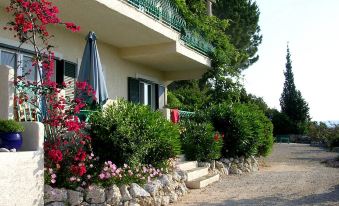 It consists of a large living room with dining area and open, fully equipped kitchen, air conditioning, satellite TV, DVD, Internet connection and two sofa beds, a double bedroom and a spacious bathroom. The kitchen has refrigerator, dishwasher and electric stove / oven, etc.) The large windows that open to the terrace and the garden and offer spectacular views of the sea and the islands, giving the impression like being on a ship.