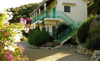 The villa, built in the style of the island is on a 4000 square meters plot, in a cypress-lined hillside, surrounded by lush gardens, overlooking the sea. It provides all of the rooms and terraces a breathtaking panoramic view, to the island of Kalamos. The quiet location, above the village of Lygia, the comfortable house and the tasteful furnishings with antiques and art objects, make it easy to feel very comfortable here soon. There is air-conditioning in all rooms, central heating and internet connection for your laptop.