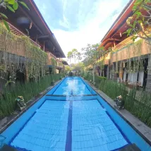 Secara keseluruhan bagus, sy kebetulan request kamar didepan kolam renang pas dtg tanaman lgi disiram jadi ngucur deh air dri atas tp sbntar kok no problem, jln depan kamar kecil bawa stroller ribet jg krn akses ke kamar pake tangga tapi dibantu sama staff cekatan barang dibawain kolam renang cukup lah tpi ga ada kolam dalam buat anak pas, fasilitas playground nya oke punya, luas ada playground outdoor jg.. untuk makanan lumayan lah cm telor omeletnya itu spertinya telor congkel…