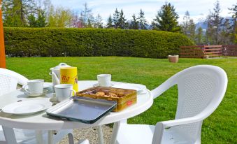 Beautiful, cosy residence "Santa Barbara", 3 storeys. Below Crans, in the district of Route du Golf, 1.6 km from the centre of Crans, in a quiet, sunny position, 1.4 km from the lake, 2.3 km from the skiing area, south facing position. For shared use: garden (not fenced) with lawn. In the complex: lift, storage room for skis, central heating system, washing machine, tumble dryer, drying room. Shop 1.6 km, supermarket 2.2 km, restaurant 1.6 km, bakery 2.4 km, bus stop "Maroz" 150 m, railway station "Funiculaire Montana Gare" 3.8 km, bathing lake "Moubra" 3 km. Golf course (18 hole) 2.7 km, skisport facilities 2.3 km, cross country ski track 2.7 km. Well-known lakes can easily be reached: Etang Long 1.4 km, Grenon 2.4 km. Please note: ski bus (free of charge). "Santa Barbara 23", 2-room apartment 48 m2, on the ground floor. Object suitable for 2 adults + 2 children. Beautiful furnishings: living/dining room with 1 sofabed (140 cm, length 190 cm), cable TV (flat screen), DVD. Exit to the garden, south facing position. 1 room with 1 french bed (140 cm, length 200 cm). Exit to the garden, south facing position. Kitchenette (4 hot plates, oven, dishwasher, toaster, kettle, electric coffee machine, Capsules for coffee machine (Nespresso) extra, raclette grill, fondue Set (cheese)). Bath/WC. Terrace 9 m2, lawn. Terrace furniture, deck chairs (1). Partial view of the mountains and the forest. Facilities: hair dryer. Internet (WiFi, free). Garage space n 6 at the house, height 190 cm, width 200 cm. Please note: non-smokers only, parking space for small car only. Maximum 1 pet/ dog allowed.