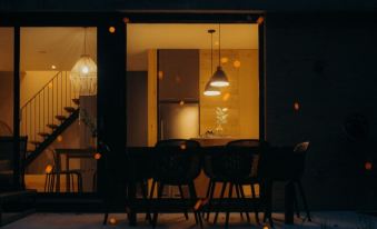 -designed by yh2 architecture, our modern kitchen is beautifully designed with quartz countertops, open shelving, and a fully stocked pantry. Enjoy your Nespresso latte on the kitchen island, or while relaxing in the egg chair looking out to nature.